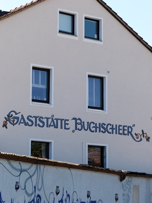 The Apfelweinwirtschaft Buchscheer (the name is an old name for pasture) is located in Frankfurt Sachsenhausen near the tram and train station Luisa. It’s a traditional inn where one is not able to order a beer, they only serve Ebbelwoi (the German kind of cider). It has a lovely outside sitting area under large trees and the inside is charmingly old but the window are … well, decidedly plain.