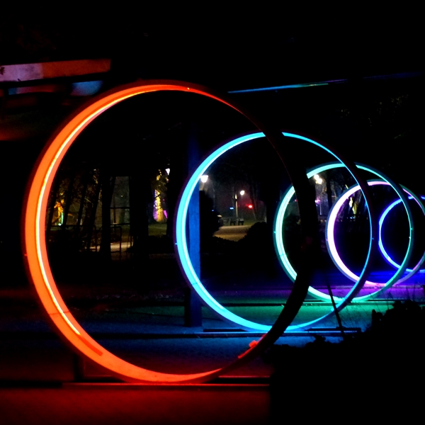 Debbie’s spinning lights reminded me of this light installation, equally colourful if not spinning.