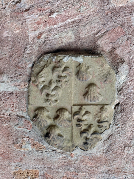 about this negative. Sometimes the negative image of photo brings out details a lot more three dimensional than the original. I found this old withered crest made of sandstone on the side of the Speyer Cathedral. Lilies and shells – I don’t know what family the crest belongs to, nor the meaning of it except in the generic sense. The shells are probably a reference to the Camino de Santiago or Way of St James or Jakobsweg. Similar the three lilies might reference France.