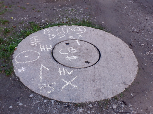 Sometimes this weekly paper chase turns into a scavenger hunt. AQ stands for adventure quest and it means that somewhere near there is a stash of drinks (often schnapps or beer but always bottles of water for non-drinkers). The task of the hounds is to locate the hiding place of the goodies.