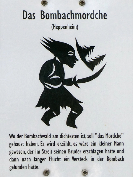 The “Mordche” (a name alluring to ‘small murderer’) is said to have lived in a particularly dense part of the Bombach forest. The story goes that he was a small man who had killed his brother during a quarrel and after avoiding justice for a long time finally found a hiding place in the Bombach valley.
