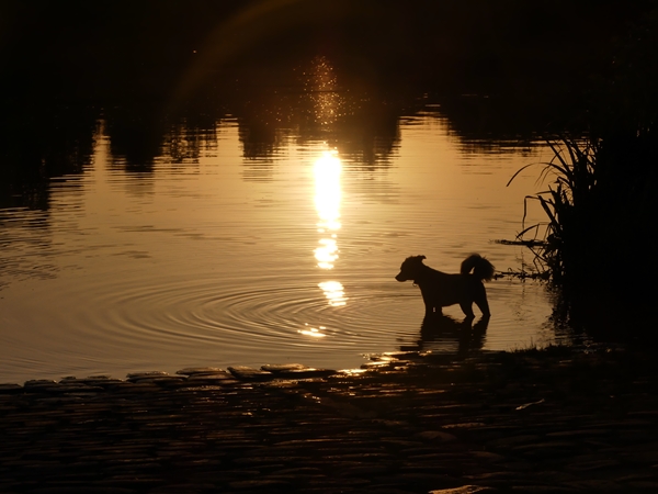 You’ve captured the dog as if it’s looking at the reflection of the sun in the river! Lovely!