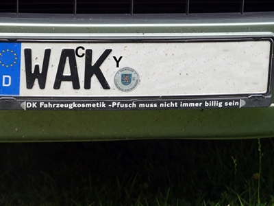 Stay away from this driver – not only does he have a wacky car plate (not his fault, he just happens to live in the WArthburg Kreis) but the line below it says: “Car Cosmetics – bungling doesn’t have to be expensive”.