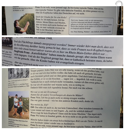 I find it highly ironic that in a section about the refugees from the East after the second world war women tell of the discrimination they experienced because they were wearing head scarves. Very similar to the discrimination that Turkish and other Muslim women experience today when wearing a scarf to cover their hair. I know that my mother-in-law who as a young girl was a refugee from the area around Königsberg/Kaliningrad was discriminated against in the Palatium because she knitted differently – she was a stranger doing strange things.