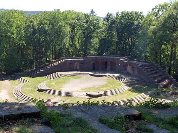 For various reasons it is difficult to talk about the Thingstätte in Heidelberg, particularly in English. The English problem is a language one. A Germanic Thing (pronounced ting) is a thing in English but not as in an object or an article but as in a folkmoot (kind of like an entmoot for people). Then there are the historic problems. This venue, fashioned in a way that Nazis envisaged Germanic culture 2000 years ago, was built in the 1930s on a hill near Heidelberg for pseudo Germanic festivities and rituals. Early on it was clear that it would never do what it was meant to do because they built a stage in the middle of an amphitheatre for thousands of spectators but forgot about toilets and other necessities. After world war II it was neglected, then half-heartedly revived (even Placido Domingo gave a concert there once), after 2000 it was only used unofficially for Walpurgis Night feasts where students partied in the night from 30 April to 1 May. This was stopped in 2018 as it created too many problems, not least several forest fires.