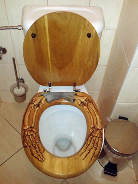 Bonus information: A toilet seat in German is a Klobrille = literally “toilet spectacles”.