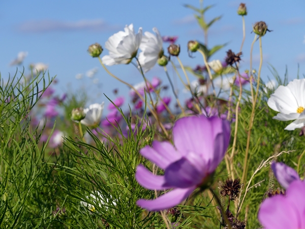 So, I will not think about the coming of autumn. Instead I will enjoy the last of summer. Cosmos are usually among the late bloomers in the field. But how glorious they are!