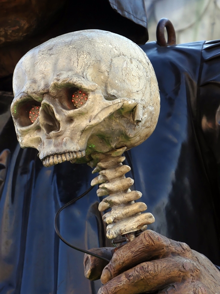 At the same fair there was a haunted house (called “Scary House”, in dumbed down English for Germans). What would a decent skull be without glowing eyes?