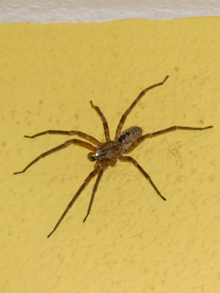 I find them fascinating. That zoropsis spinimana, the spider on the yellow background, had moved into our bedroom. It is a relative newcomer to Germany and some caring soul has christened it “Nosferatu spider”, and now everybody is afraid of it. It can bite, normally doesn’t bite humans, though, and if it does it’s not worse than a wasp bite. It took me a while to convince my husband to leave it high up in the corner and I guess there were not enough flies in our house so after a short while it moved out by itself.