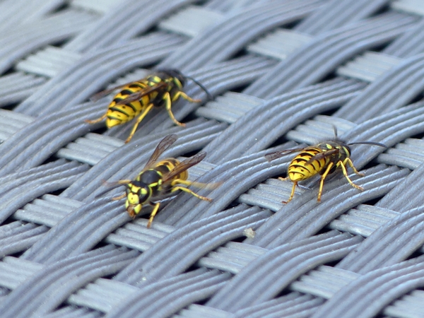 Three wasps. Considered the twats of the insect world, at least by humans who are trying to eat their cake.