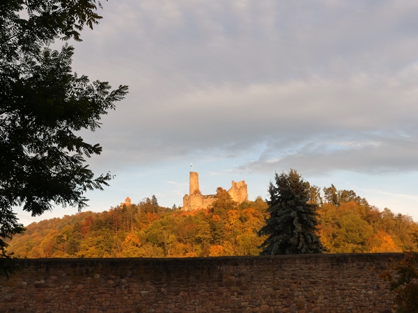 And the photo was taken from the castle ruin to the right. In autumn Windeck and Wachenburg look down on Weinheim, late in the afternoon basking the golden, warm glow of the setting sun.
