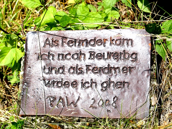 Here the letters are scrambled in many of the words (Fremder – nach – Breuberg – Fremder – werde – gehen). As it is an attempt at art to show somebody (a stranger) not fitting in it’s very probably deliberate. It’s set in … not stone but in clay.