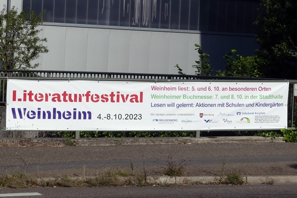 Not a spelling error but a grammatical one. In the line: “Lesen will gelernt” (reading has to learned). There is the problem of space in that line but for crying out loud, the poster advertises a festival of LITERATURE aimed at school children! Even if it was deliberate (I doubt it) it would be a blunder.