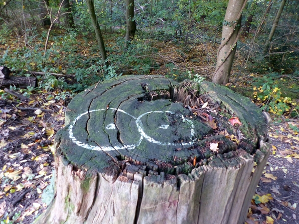 When we go running (or walking or traipsing) on Sundays we follow flour blobs. Three blobs of flour and you are on the right track, aka “true trail”. Every now and again we might encounter a circle like this, aka a check.