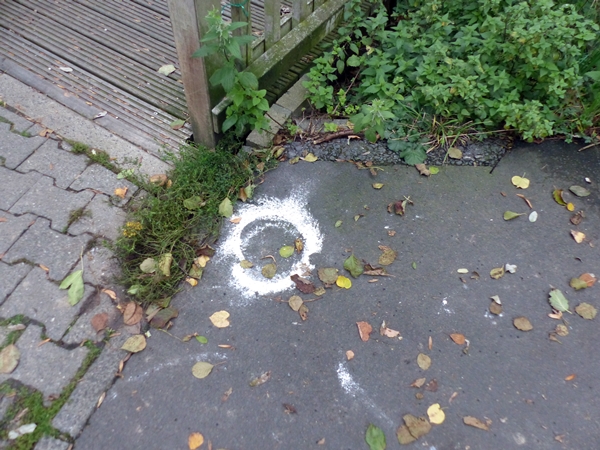 When we go running (or walking or traipsing) on Sundays we follow flour blobs. Three blobs of flour and you are on the right track, aka “true trail”. Every now and again we might encounter a circle like this, aka a check.