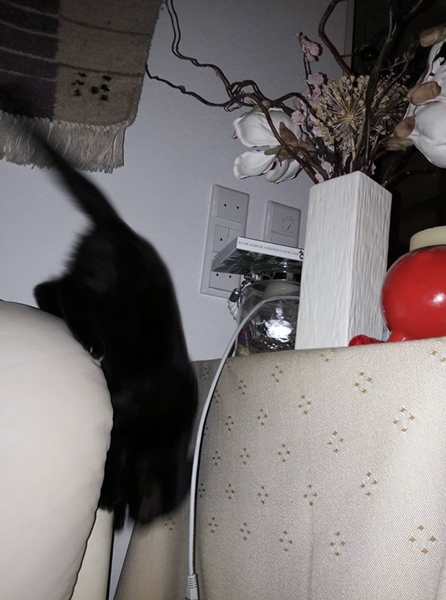 This is not Schrödinger’s cat, this is our cat, Henry. He is in the liminal state of sitting on the couch and sitting on the floor.