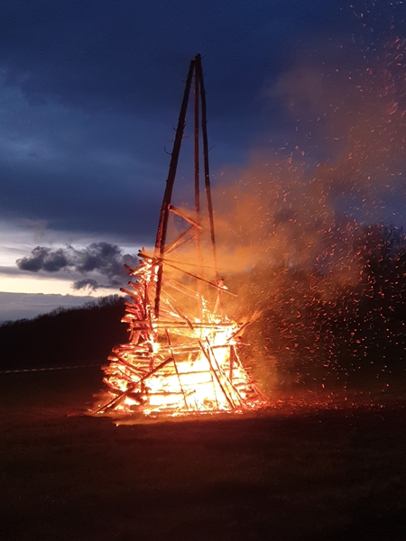 This tradition is revived each year in many villages on the Saturday of the last week. These are called alarm fires (or shortened ” ‘larm fires” understood as “noise fires”, Lärmfeuer).