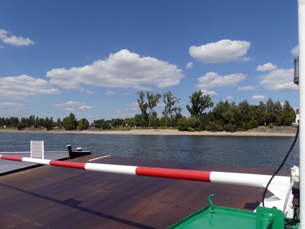 Depends on the ferries. The ride across the Rhine is less than ten minutes and only about 20 cars can get on.