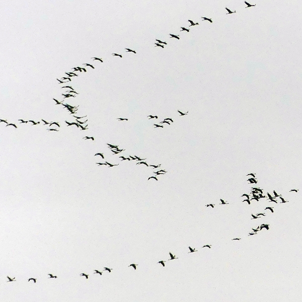 Overhead the cranes were on their loud way south, moving forward ’cause they can’t fly backwards.