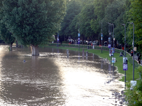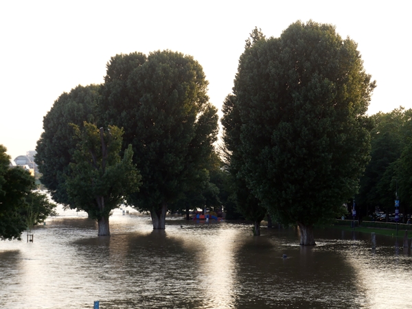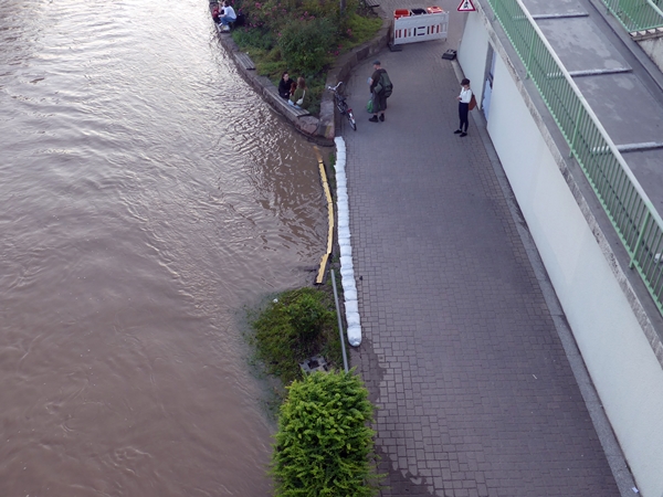 I gave you a little flooding of the local maize fields last week – today I passed a bridge over the river Neckar in Heidelberg: more flooding and more serious flooding. Southern parts of Germany are fighting against floods and the water has been coming our way.