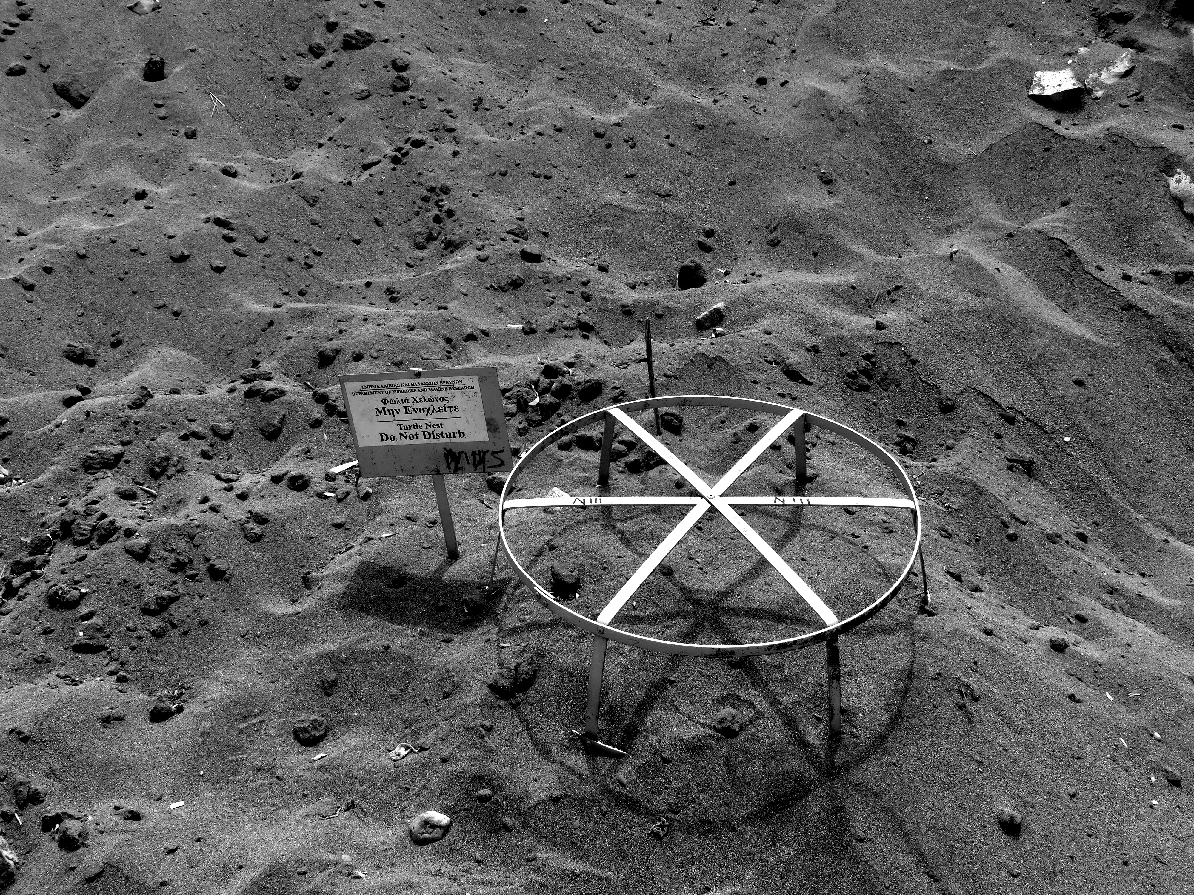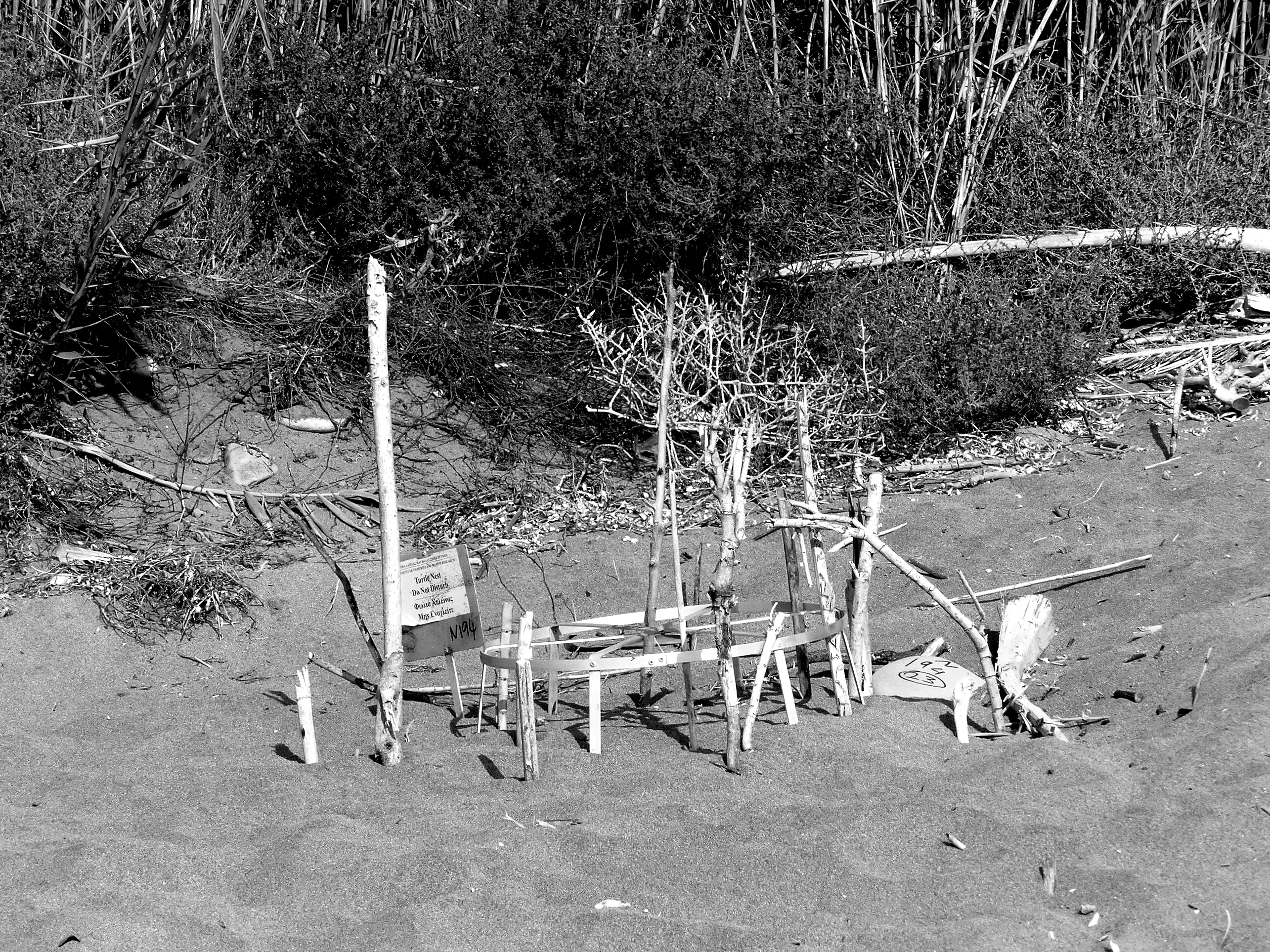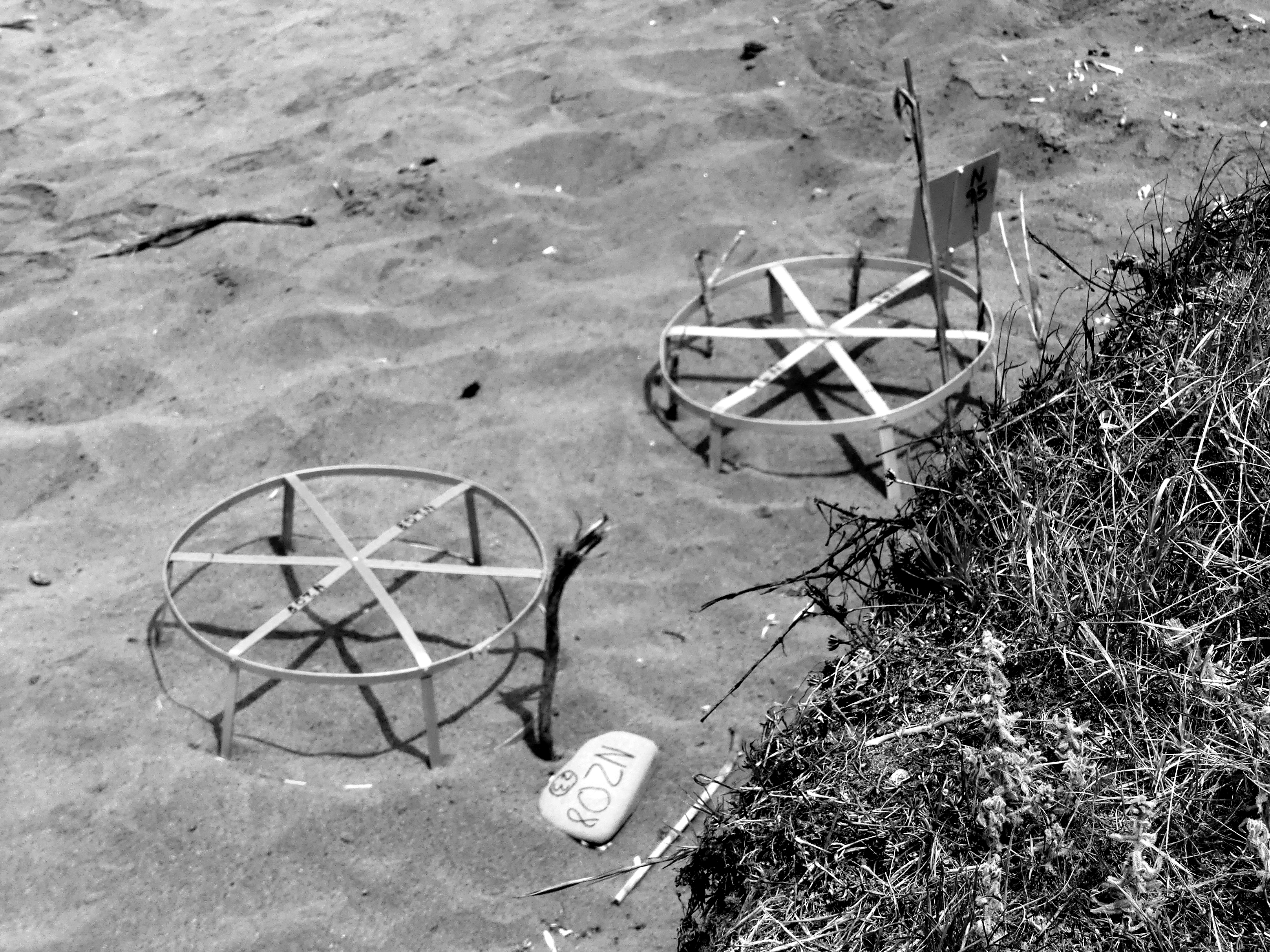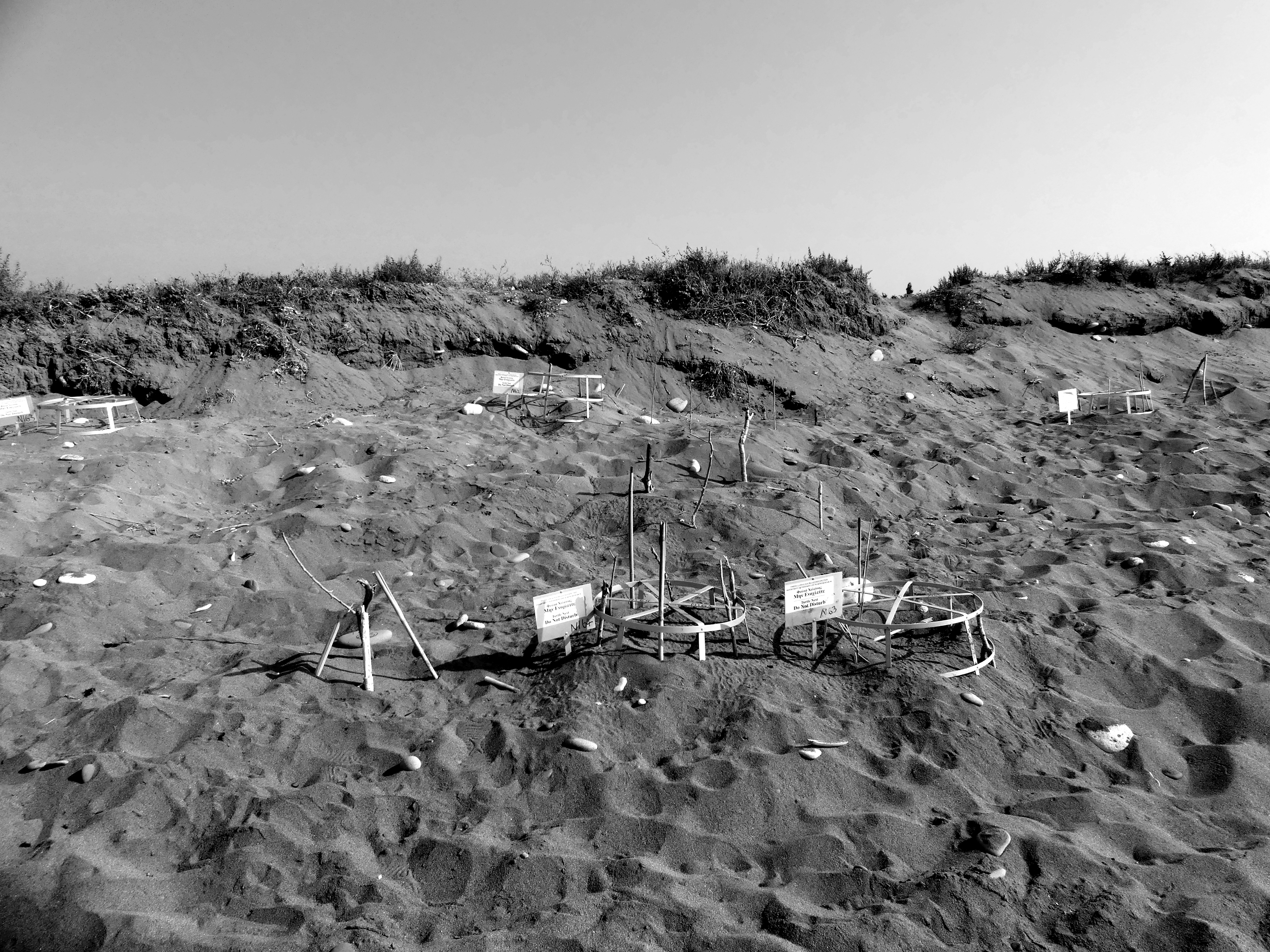 On Naturana Beach in Cyprus, there are lots of circles on stilts. They are numbered and registered and note the place of turtle nests.