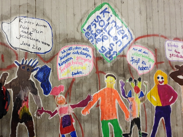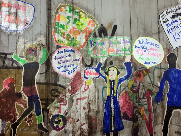 This mural was created by class of students in Frankfurt, Germany, many of them immigrants with refugee status.