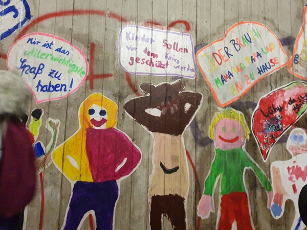 True. But the children who did this mural were talking about actual war. Many of them are refugees.