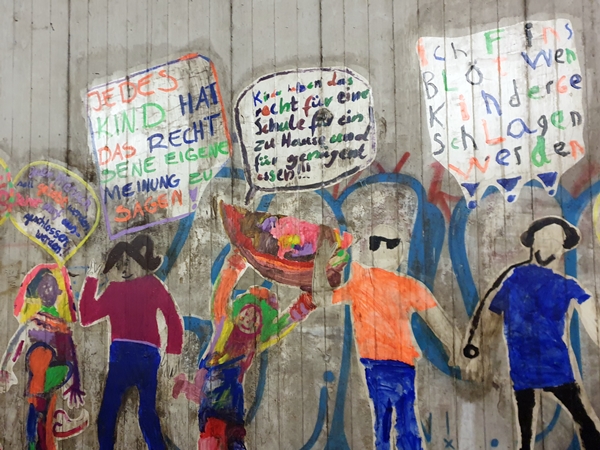 This mural was created by class of students in Frankfurt, Germany, many of them immigrants with refugee status.