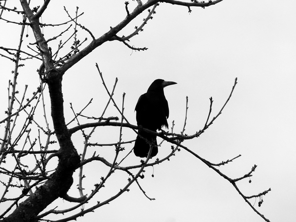 Either contrasting in its own right as with this pigeon on a monument or through depth of field, another crow.