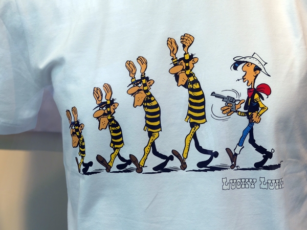 The ultimate in horizontal stripes. Modelled here by the Dalton brothers rounded up by Lucky Luke. If you don’t know, Lucky Luke is a comic strip, published in books, by the Belgian Morris. It’s worldwide the most successful Wild West comic, was first published in 1946, texted for a time by Asterix creator René Goscinny, and even though Maurice de Bevere aka Morris died in 2002, more books have since been published.