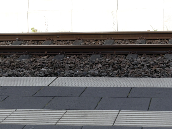 Different textures and materials create stripes at the train tracks.