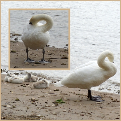 I had to cheat a bit with the photo. There are really seven swans, five cygnets and the parents, in the original photo but no way I could get them completely in a square.