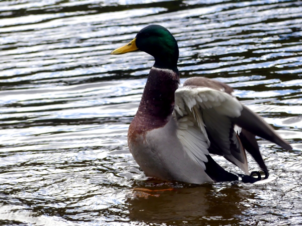 All in a Mallard’s Day Written by eklastic Concentrate. Do. Or do not. There is no try. I chose: Do. Dive down. Resurfacing. Actual water off my back. Now a bit of stretching. And now the finale: Flap. Flap. Flap. Water, Water Everywhere . . .. Share this: Click to share on X (Opens in new window) X Click to share on Facebook (Opens in new window) Facebook Like Loading... 2 thoughts on “All in a Mallard’s Day” Great series Elke LikeLiked by 1 person Reply I am glad you like the duck! LikeLiked by 1 person Reply Leave a comment Cancel reply Δ