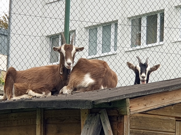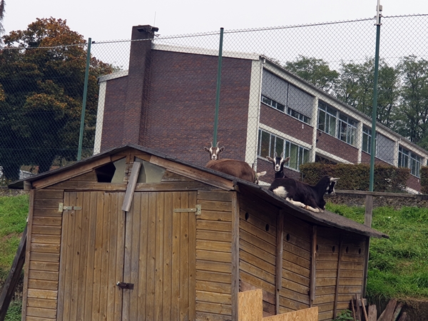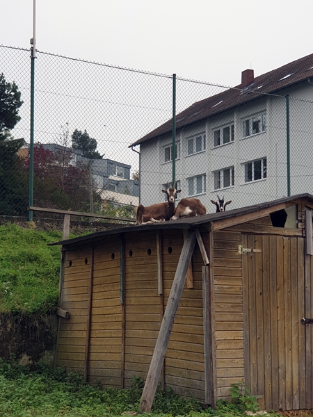 Each morning on my way to work I pass a home for the handicapped. Between the buildings and the road is a stretch of green grass with a little stable and goats. I know it’s spring when I see baby goats scamper about, and this week I knew it was autumn when I saw the goats not in the grass but on the roof of the stable. I guess it’s warmer up there and also drier, particularly early in the morning.