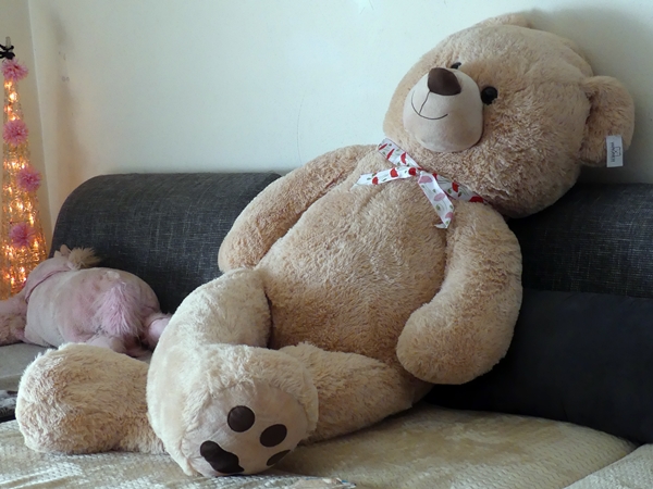 Wagner was a birthday present. The recipient loved it (she had wished for a large bear). By day. Apparently she doesn’t like him in her bedroom at night, so he has to sleep in front of the TV. LikeLiked by 1 person Reply