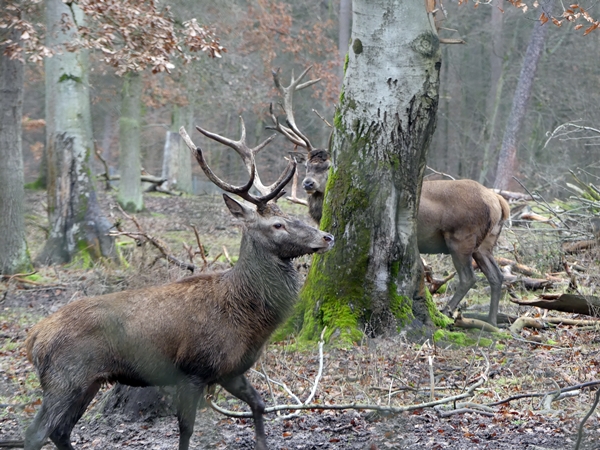 What’s that young stag doing in his forest? Is he jealous of the younger possibly fitter young buck? Or is the younger one jealous of the herd of deer over which the older one lords?