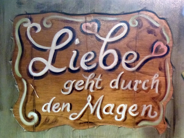 The English equivalent is: “The way to a man’s heart is through his stomach.” The German saying is less sexist and less speciist.