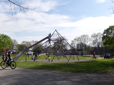 At the end of our loop we came to the playground which was busy. And a couple of steps on there was a different less permanent playground.