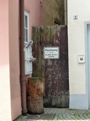 1. I have no clue. That’s why I took the picture. Maybe it’s the exit of an escape route. Maybe the emergency exit if a cinema or club leads to this alley way. Too many maybes.