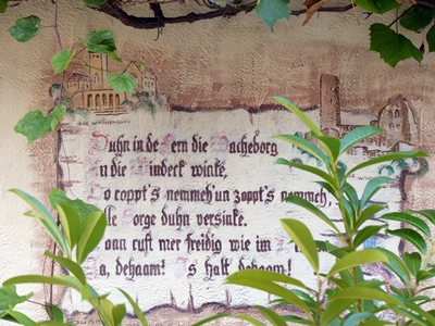 But even when I was little I knew this place was special to me. There is an old half-timbered house in the old part, probably the narrowest building in the whole of Weinheim, with a verse in the local vernacular written on its wall.