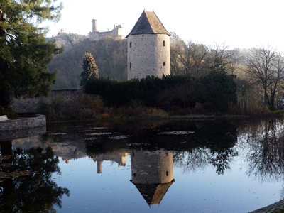 The verse reads, roughly translated: “When in the distance the two castles, Wachenburg and Windeck, can be seen, the heart grows peaceful, all the sorrows disappear. Then one calls joyfully as if in a dream: At home! That is the home!” I always remember that arriving home after a holiday, even as a child, I would look for the familiar castles and the yellow quarry that makes the hill so distinctive.