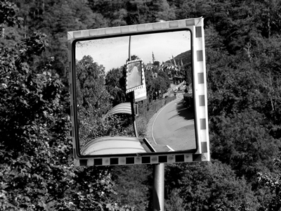 Mirrors can help with introspection like this installation in Schwetzingen, Germany, to honour the victims of Nazism called “Mirrors of History” (Spiegel der Geschichte). The mirrors reflect their surroundings but also, depending on the angle, the onlooker leaving a “there but for the grace of God” feeling. At the same time they look like spectres, from certain angles they are difficult to make out.