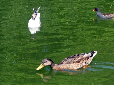 And to round it off a trio of three different species: a duck, a moorhen, and a small gull.