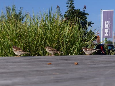They were fun to watch. It was outside a bakery (i.e. lots of crumbs).