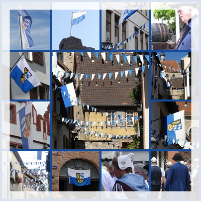 At our annual town festival the colours are white and blue and everything and everybody is dressed up in white and blue.