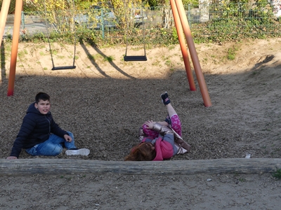 I was high up in the trees doing what every grandma craves to do: impress the kids with their acrobatic feasts.