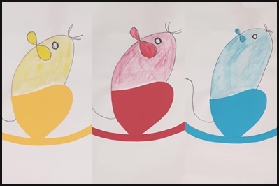 I tell the story of three white mice who happen to come across pots of the three primary colours.