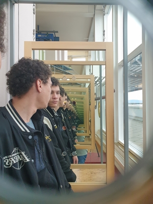 at the very back, he sees a little man waving to him (Sir Terry Pratchett made me do it [add the additional words]).