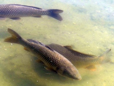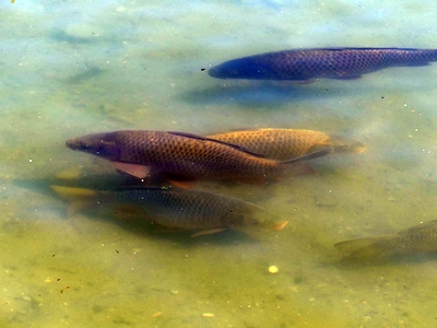 I passed a suburban lake the other day and was amazed to see such a large fish (at least 50 cm, I would guess) swimming close to the shore in fairly shallow water. I took a picture even though I wasn’t convinced I would be able to see much.
