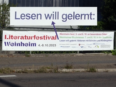 Advertising can be obnoxious at the best of times. Escpecially when it’s too repetitive (on tv, radio, youtube …) or too in-your-face. One of my pet peeves, however, are grammatical or spelling errors – intentional or unintentional. If you spend money and time on an ad, spend a little more to have it checked properly. This one irked me particularly because it is a for a festival of literature with particular emphasis on young readers. They left out the verb: “reading needs to learned”. If it was meant to attract attention, it got mine – but a very negative one.